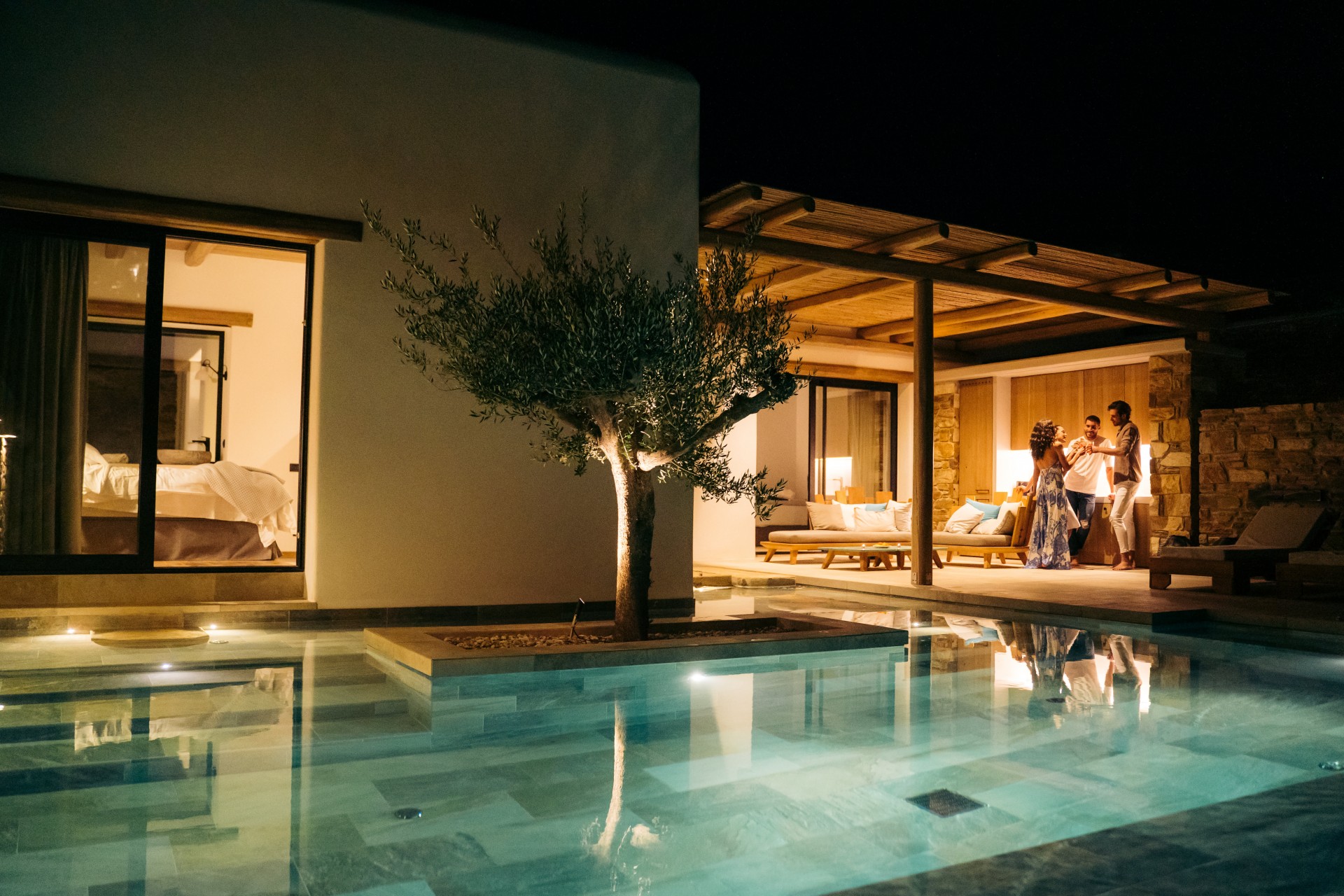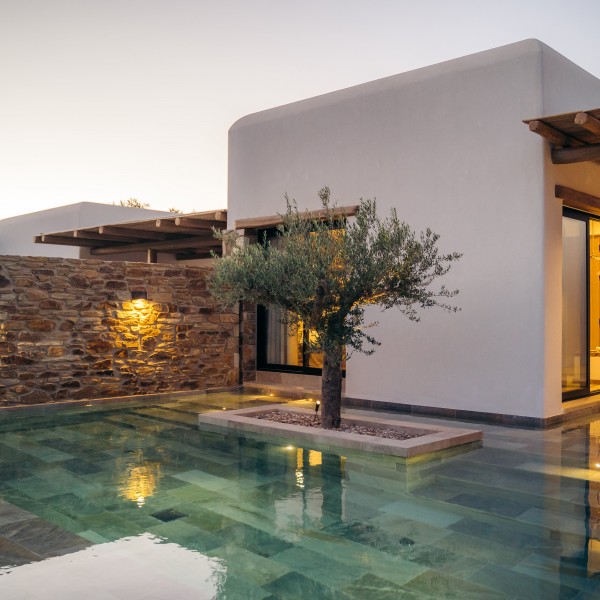 Promising an unforgettable Ios experience, our brand new project, located in the heart of Mylopotas (300 metres from the beach), is a luxurious accommodation option sleeping up to four guests. Offering stunning with private garden view, the Villas boast an oversized balcony and pool that is ideal for reading, sunbathing or simply daydreaming. The glamorous past is discreetly infused in every corner of the Villas enriching plush furnishings, modern & eco-friendly amenities and touches of Cycladic style. The scenery is adorned by a spacious shower, a writing desk, a well-equipped kitchen and a series of facilities that add extra special touches of care while you acquaint yourselves with your new “home” at Ios Island.